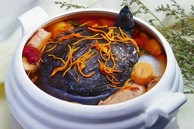 食法、食量:食时,根据食者的喜好,用麻油或调制蒜泥等调味汁水,蘸食新炖熟的天麻及甲鱼,并喝汤。