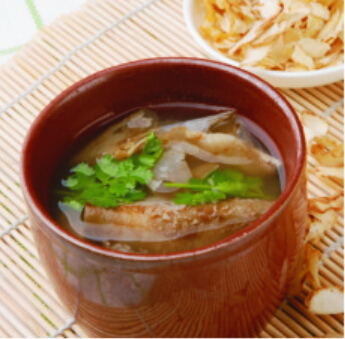 特点:清汤爽口,食用方便。具有治疗头痛、目眩的功效。